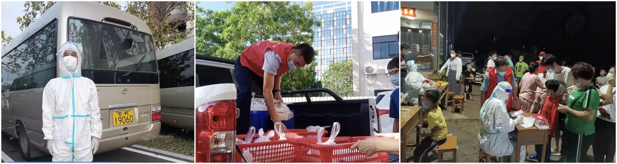 (中:集團下屬綜合服務(wù)公司蔡志英同志第一時間為醫(yī)護人員配送餐食)