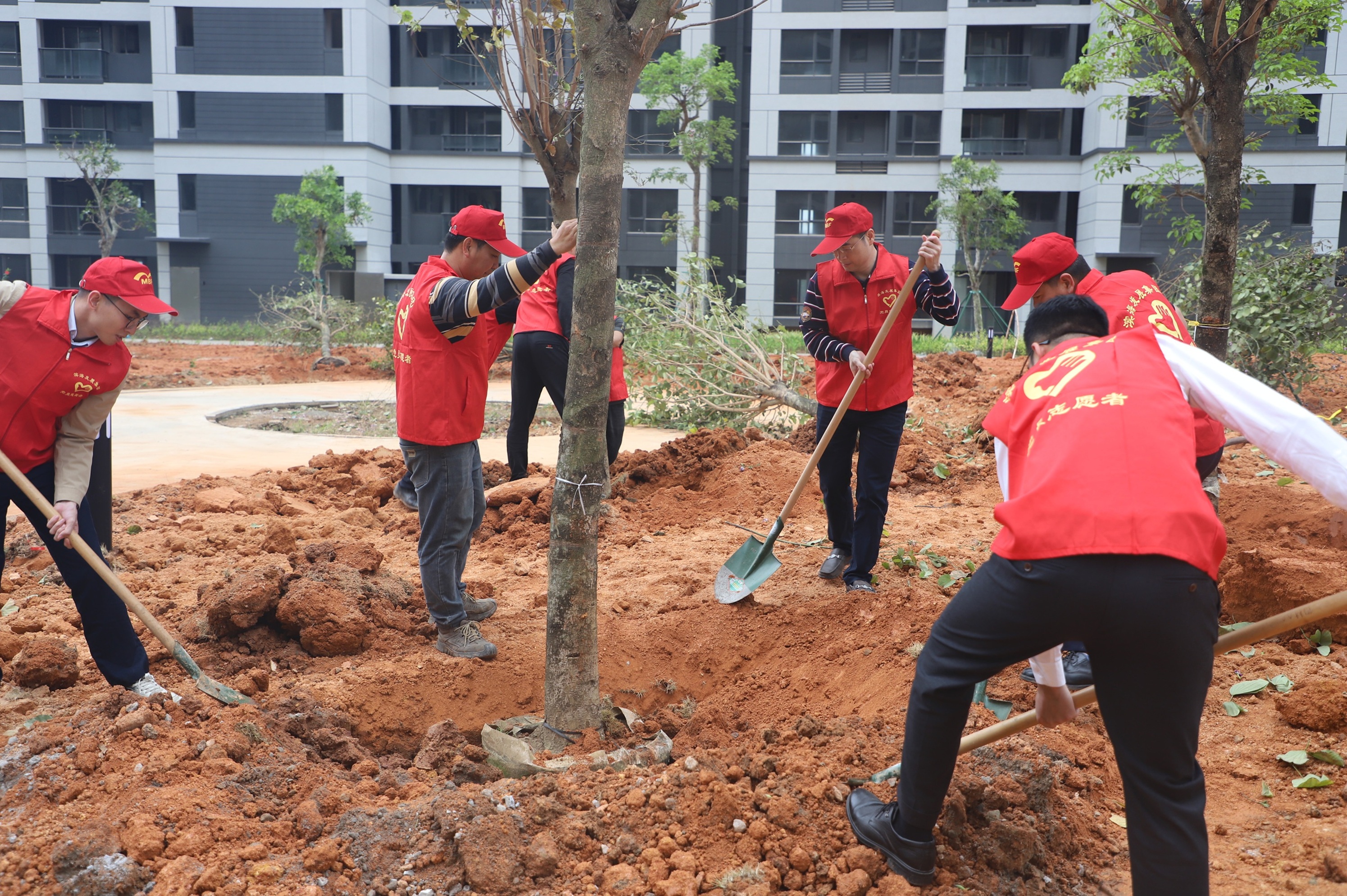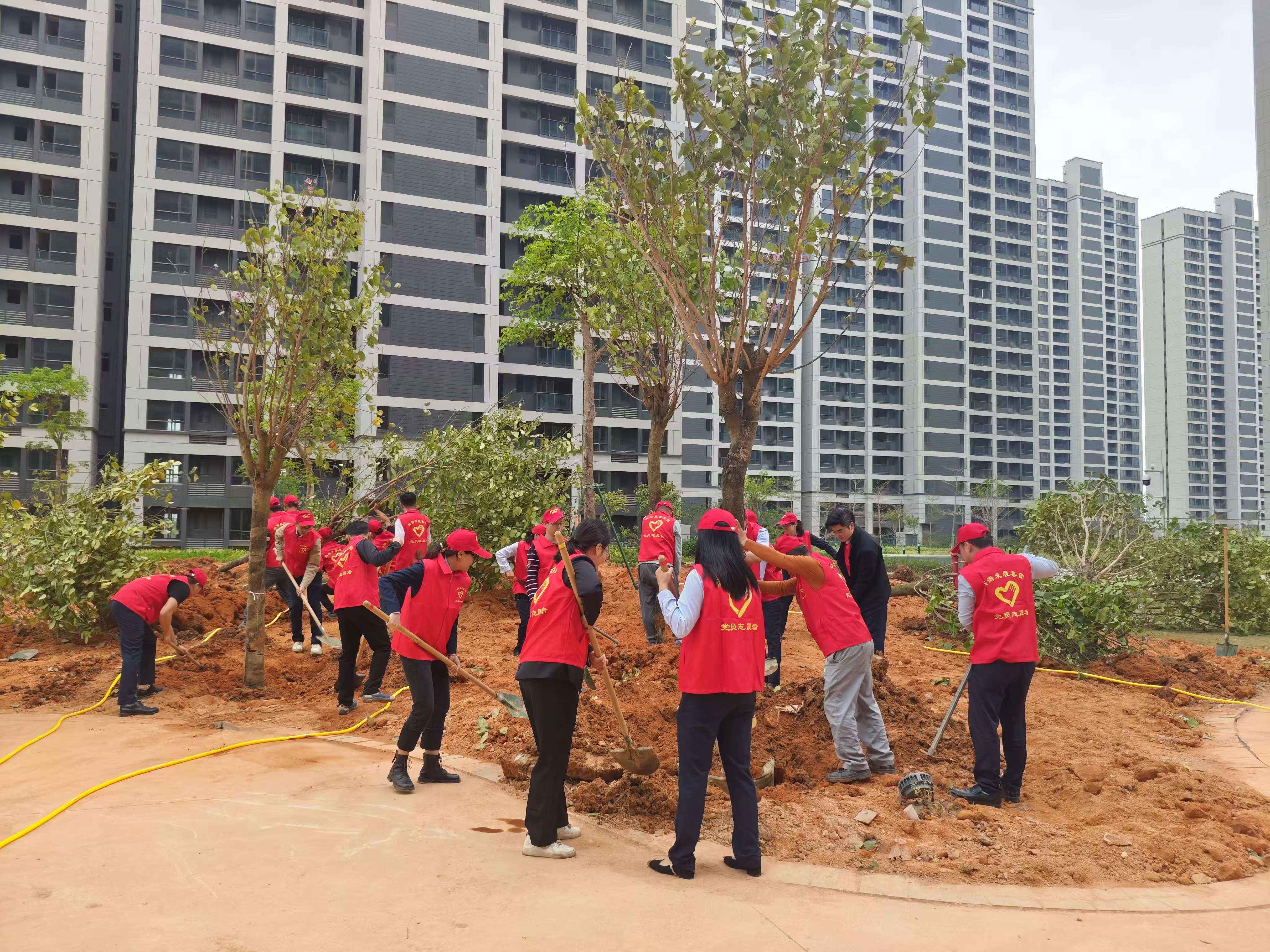 活動現(xiàn)場一片熱鬧,集團領(lǐng)導(dǎo)班子率先垂范,黨員干部職工熱情高漲。受集團黨委書記、董事長呂崇君的委托,在集團黨委委員、總裁李滔的帶領(lǐng)下,眾人分工協(xié)作,揮鍬鏟土、扶苗培根、圍堰澆水,經(jīng)過一個多小時齊心奮戰(zhàn),40棵宮粉紫荊樹在東灣綠城迎風(fēng)而立,與周邊的建筑物相映成趣,形成一道亮麗的風(fēng)景線。